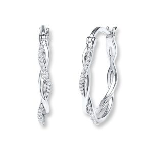 Diamond Hoop Earrings 1/8 ct tw Round-cut Sterling Silver