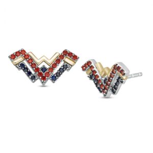 GarnetandBlueSapphireSymbolStudEarringsinSterlingSilverand10KGold:GarnetandBlueSapphireSymbolStudEarringsinSterlingSilverand10KGold