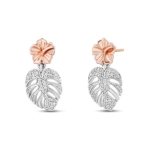 Diamond Palm Leaf Earrings 1/10 ct tw Sterling Silver & 10K Rose Gold