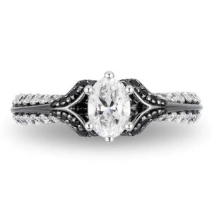 - Ce modèle saisissant met en valeur un diamant étincelant de forme ovale de 1/2 carat.