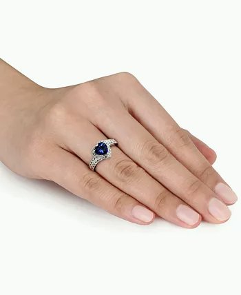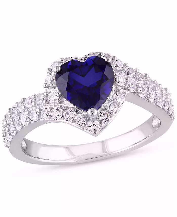 Blue Sapphire (1-7/8 ct. t.w.) & White Sapphire (1-7/8 ct. t.w.) Heart Swirl Ring in Sterling Silver