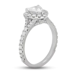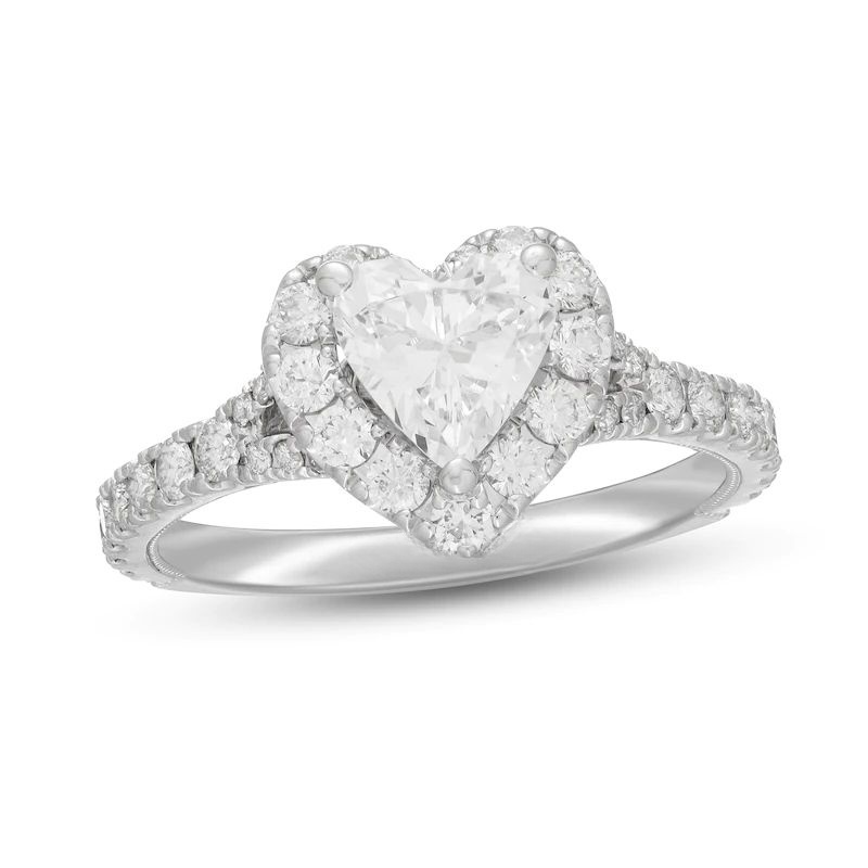 Coupez-leur le souffle avec l’éclat romantique de cette magnifique bague de fiançailles issue de la collection Neil Lane Bridal®. Un adorable diamant taillé en cœur rayonne au centre, délicatement entouré d’un halo de diamants ronds étincelants. La superbe pierre centrale repose parfaitement sur une alliance classique ornée de diamants ronds brillants tout autour. Fabriquée en or blanc 14 carats emblématique, cette bague possède un poids total en diamants de 1 3/8 carat.
